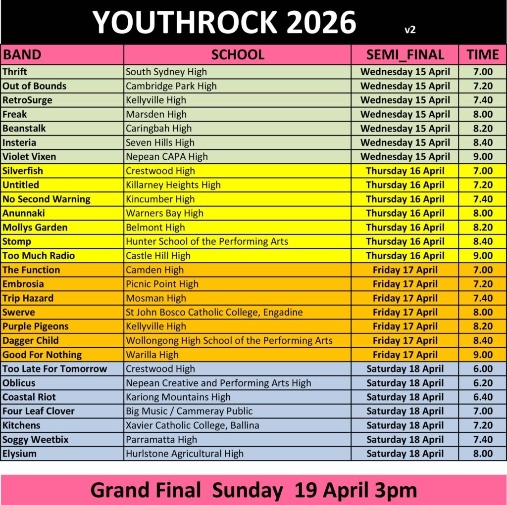 Any questions email YouthRockNSW@iinet.net.au